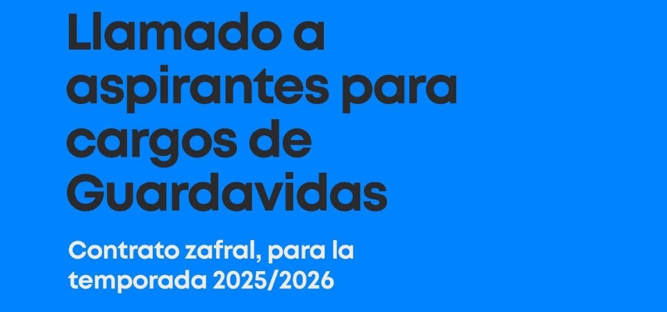 Llamado a aspirantes para cubrir: 15 (quince) cargos de Guardavidas, contrato zafral, para la temporada 2025/2026 con destino a cubrir el Servicio en las localidades de Carmelo, Artilleros, Fomento, Colonia del Sacramento, Juan Lacaze y Nueva Palmira.