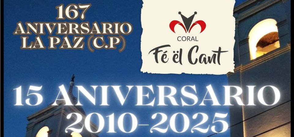 En el marco de los festejos por el 167° Aniversario de La Paz (C.P.), se celebrará el 15° Aniversario del Coral Fé ël Cant, fundado en el año 2010.