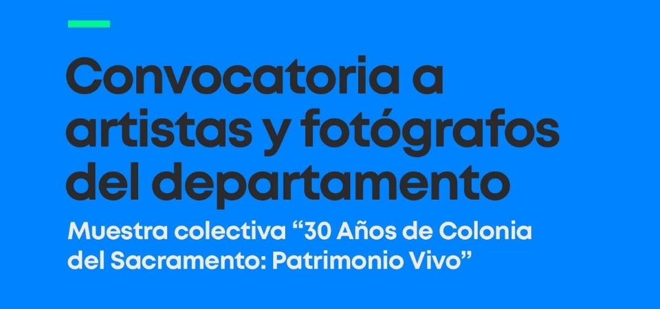 A través de la Dirección de Cultura, convoca a artistas plásticos y fotógrafos del departamento a participar en la muestra colectiva “30 Años de Colonia del Sacramento: Patrimonio Vivo”, en conmemoración del trigésimo aniversario de la declaratoria del Casco Histórico de Colonia del Sacramento como Patrimonio Cultural de la Humanidad por UNESCO (1995–2025).