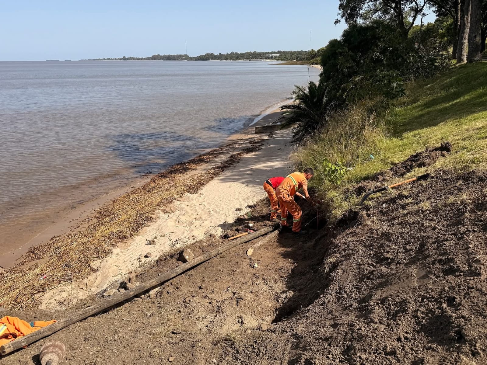 En este caso en particular: en El Álamo, realizando el mantenimiento de las escaleras y de las bajadas a la playa, hecho que se replica en toda la costa coloniense, con un equipo compuesto por unas 20 personas y trabajos que también incluyen corte de pasto, limpieza en general, pintura de escaleras y barandas, procurando acondicionar de la mejor manera posible el acceso a las playas.