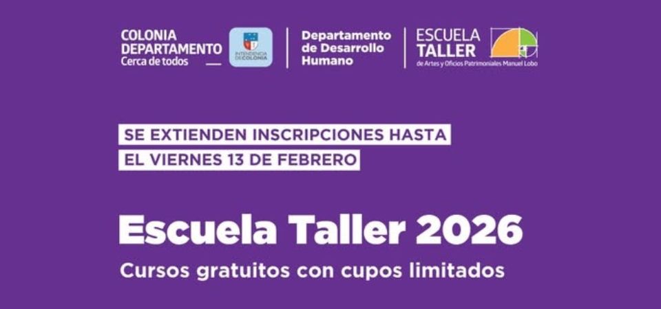 La Escuela Taller de Artes y Oficios Patrimoniales “Manuel Lobo”, dependiente del Departamento de Desarrollo Humano de la Intendencia de Colonia, informa que se extienden las inscripciones para los Cursos 2026 de esta institución hasta el viernes 13 de febrero, tanto para Colonia como Juan Lacaze y Carmelo, para jóvenes y adultos de todo el departamento.