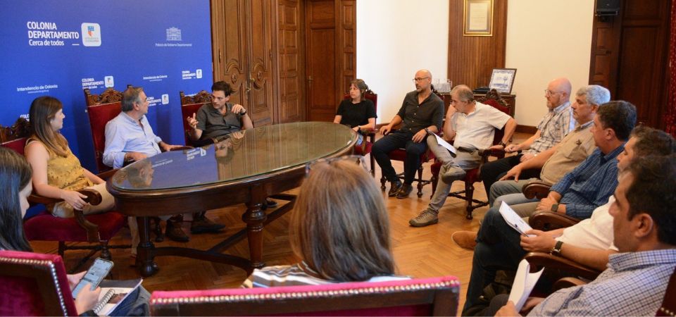 El Intendente de Colonia, Guillermo Rodríguez, junto a la Secretaria General, Belén Rico Skerl, y Directores del Departamento de Obras y de Arquitectura, se reunieron con el Director de Descentralización de OPP, José Manuel Arenas, junto a los encargados de los distintos programas de la Oficina de Planeamiento y Presupuesto.
