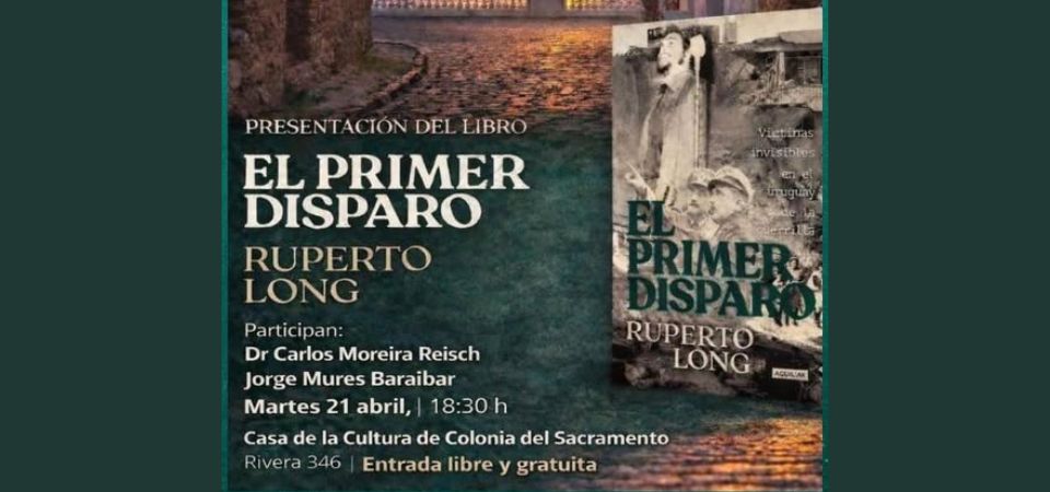 La Intendencia de Colonia, a través de la Dirección de Cultura y el Sistema de Bibliotecas, informa que el martes 21 de abril en la Casa de la Cultura de Colonia del Sacramento (Rivera 346), a la hora 18:30 tendrá lugar la presentación del libro «El primer disparo», del escritor Ruperto Long, una obra que aborda la historia de las víctimas invisibles durante la guerrilla en Uruguay.